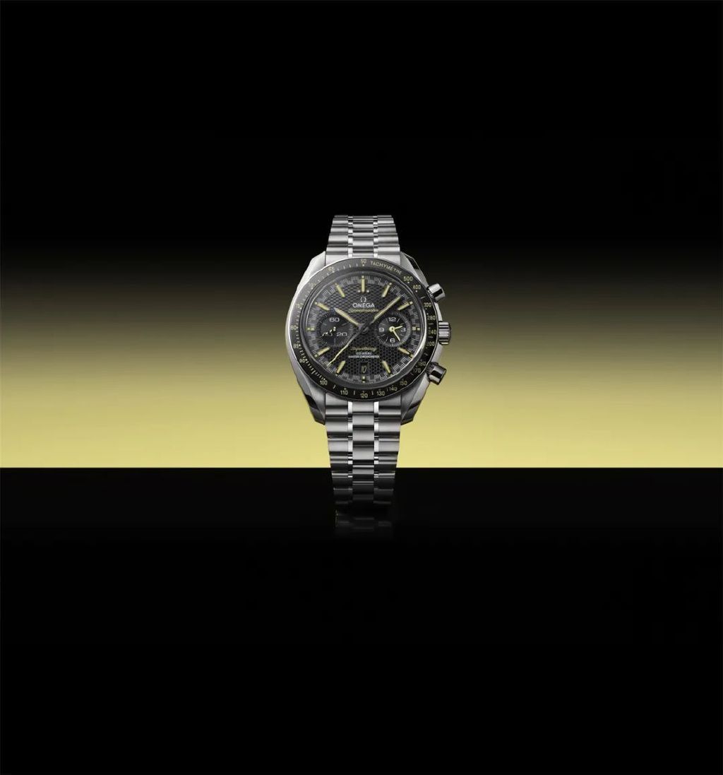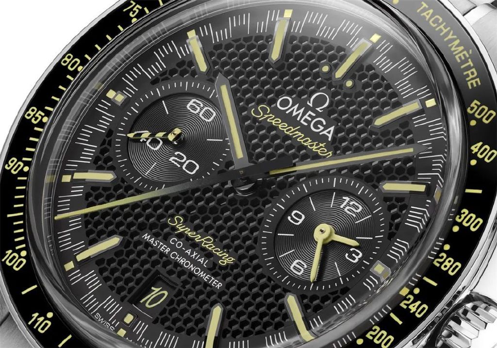 单纯从设计来说,Super Racing也很有看点。它的外观致敬了2013年欧米茄推出的“大黄蜂”。这是欧米茄第一款防磁达到15,000高斯的腕表。从那款表推出至今,正好是10年。