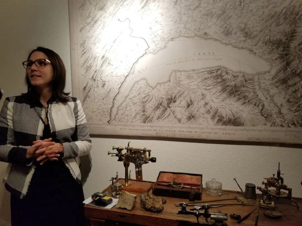 参观爱彼工坊时听讲解员解说瑞士制表地理