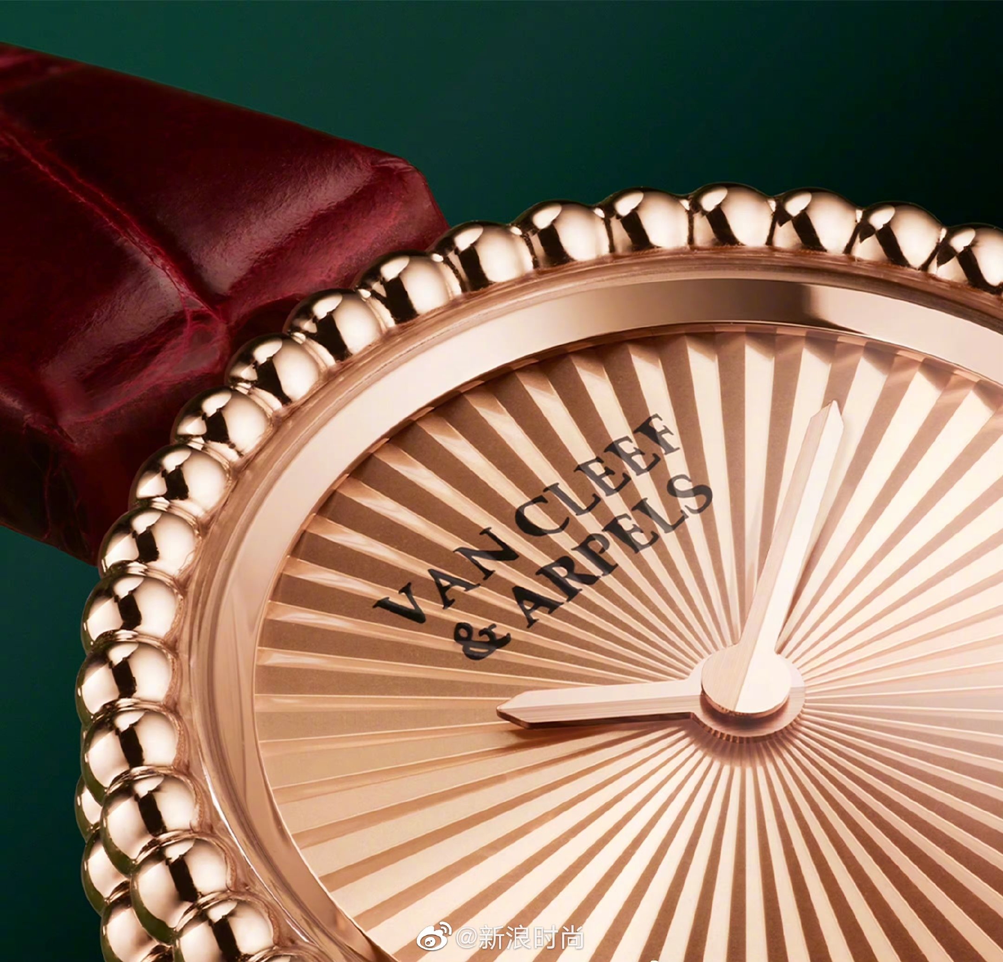 图1-3:Perlée腕表23毫米,精致流畅的金珠表壳,高贵又奢华的皮质深红色表带,宛如一泓温煦辉光,将女性的曼妙风姿诠释淋漓尽致。