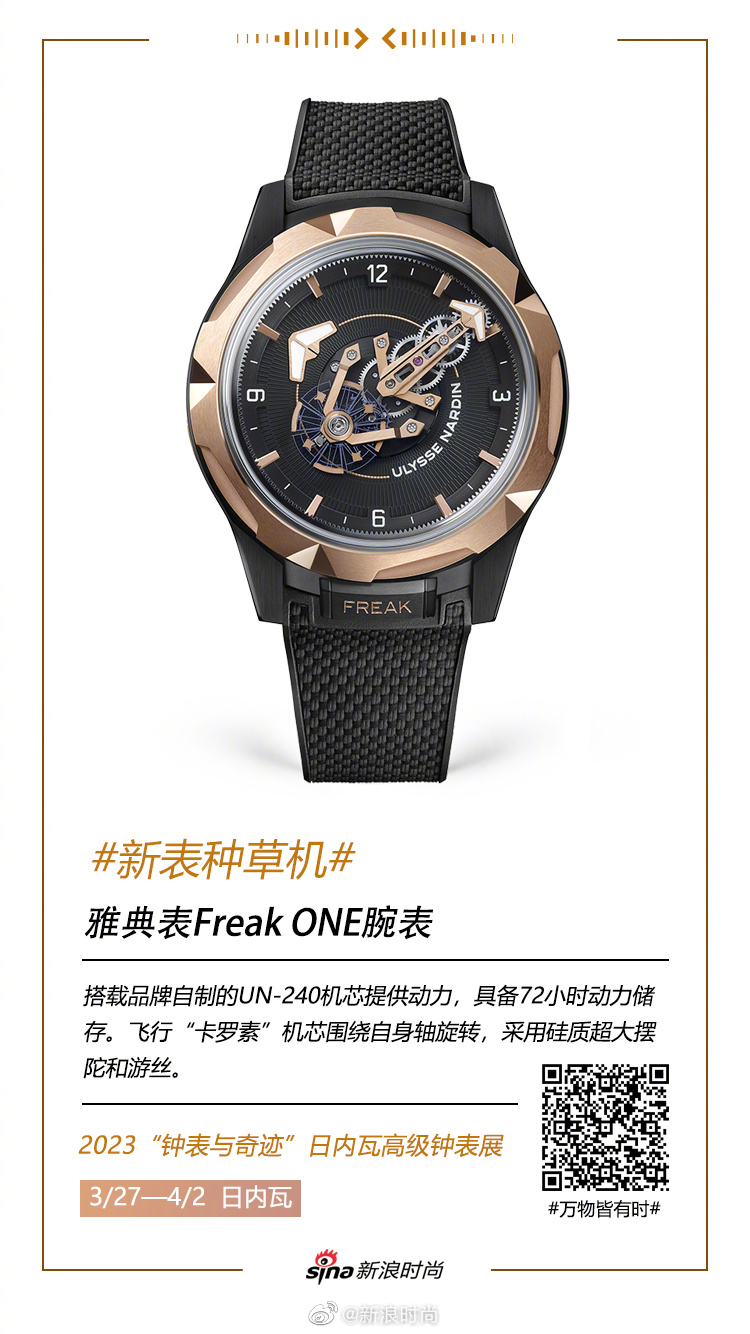#万物皆有时#【2023#钟表与奇迹##新表种草机#:雅典表】雅典表的克制冷静质感,全然体现在本次发布的全新Freak ONE腕表中,Freak奇想系列腕表的外观就一直坚守三大标志性特征:无表盘,无指针,无表冠。这种独树一帜的风格设计,在新款Freak ONE腕表上继续延续,一旦佩戴上,便会感受到其冷静外观下的长情之心,告诉自己,这就是我的腕表。