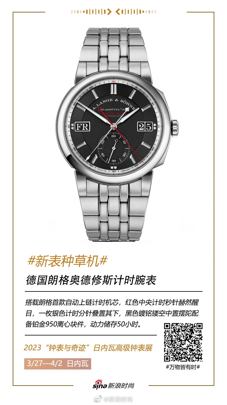 #万物皆有时#【2023#钟表与奇迹##新表种草机#:德国朗格】德国朗格本次表展推出的新作ODYSSEUS奥德修斯计时腕表,全球限量发售100枚,纯精钢的外观刻画着极具工业美感的现代设计语言。尤其是表盘上红黑配色的鲜明对比,于内敛中透露出一丝锋芒,仿佛是即将出鞘的利剑,向世人宣告其强大。