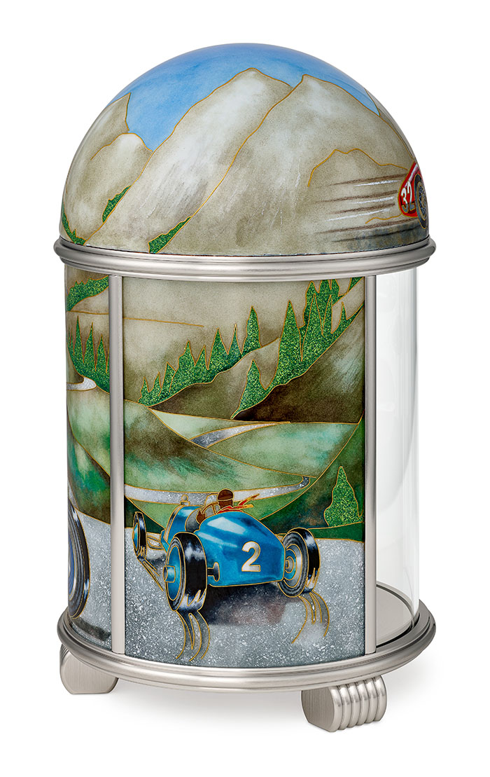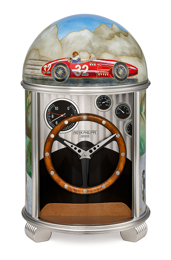 另一部分时计则致敬人类伟大的冒险传奇。一组时计以跑车为主题,其中包括 Ref. 5189G-001“1948年国家大奖赛”Calatrava腕表和Ref. 5189G-011“1956 年高山拉力赛”Calatrava腕表,其表盘结合掐丝珐琅与金箔珐琅技艺。Ref.20149M-001“赛车”掐丝珐琅圆顶座钟配备新颖别致的表盘,小时刻度环选用黄柏木精制而成,与饰有机刻花纹的仪表盘和包覆真皮的座椅相得益彰。Ref. 5538G-018“孟加拉丛林”Calatrava 腕表,配备三问报时和陀飞轮装置,饰以微绘珐琅;Ref. 995/119G-001“和风夜色”怀表则以浅浮雕工艺呈现手工雕刻植物图案,以微绘珐琅描绘星罗棋布的夜空,并选用珍珠母贝手工雕琢出清澈溪流。Ref. 992/177J-001“乞力马扎罗山风光”怀表,则令非洲风光跃然眼前。帕玛强尼于2023年“钟表与奇迹”高级钟表展呈献全球首发的精妙杰作、甄选铂金材质匠心打造的尊贵腕表以及品牌的历法功能时计三重奏,开创全新境界。