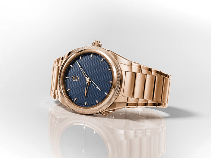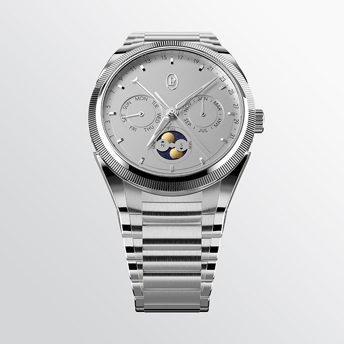 为了礼赞尊贵不凡的材质——铂金,帕玛强尼带来标志性的Tonda PF微型摆陀腕表以及Tonda PF飞行陀飞轮腕表。Tonda PF微型摆陀腕表采用纯铂金打造表壳、表链和表盘,仅呈现小时、分钟和日期这些必要的计时功能,展现其所蕴含的美学创意精髓。Tonda PF系列飞行陀飞轮腕表的铂金表盘呈现帕玛强尼首选的“米兰蓝”色调,搭载品牌自制自动上链飞行陀飞轮机芯,并配备铂金微型摆陀,经抛光处理的铂金滚花表圈格外精美夺目。Tonda PF双秒追针计时码表在雅致迷人的玫瑰金表壳之下隐藏了一台竞速“机器”——由309个部件组成的机芯,配备两个导柱轮,一个用于控制基本的计时功能,另一个用于驱动双秒追针功能。