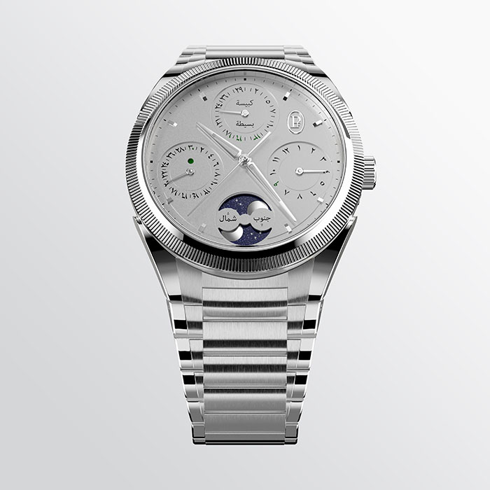 此外,帕玛强尼还呈献了卓尔不凡的铂金腕表三重奏,将三种不同的历法功能凝聚腕间。Tonda PF年历腕表搭载品牌特制PF339机芯,并内置逆跳式年历和精准月相显示功能。Tonda PF系列Hijri Perpetual Calendar回历腕表囊括所有回历信息,表壳和滚花表圈由950铂金制成,搭配流畅衔接的一体式铂金表链。Tonda PF夏历腕表囊括中国传统历法元素,以极其复杂精密的机制来实现历法信息的指示,并使用传统的繁体汉字来显示。