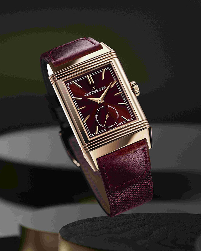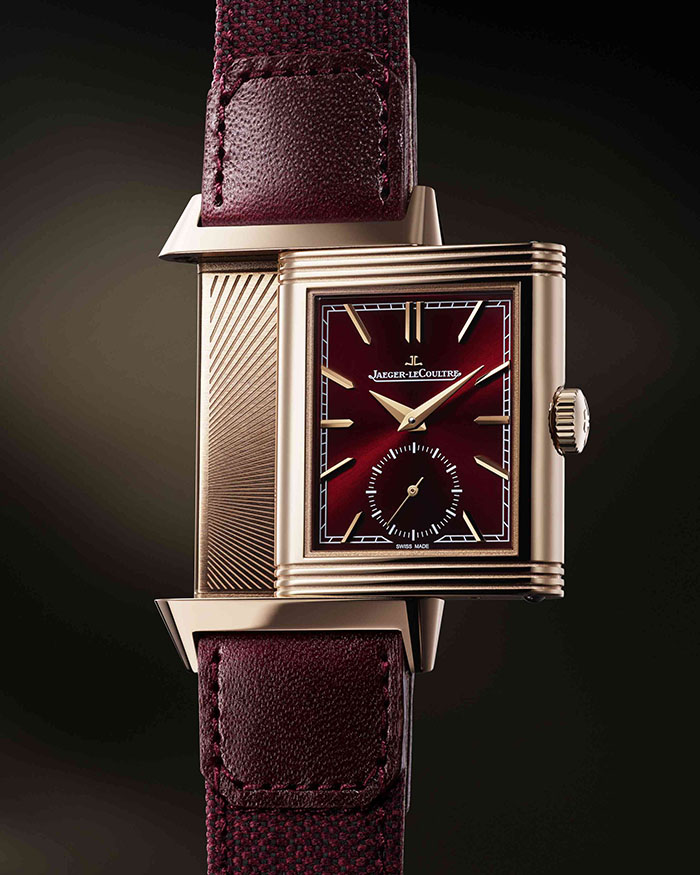 2023年,积家延续色彩传奇,推出Reverso Tribute Small Seconds翻转系列小秒针腕表,并搭配四款太阳放射状饰纹表盘。