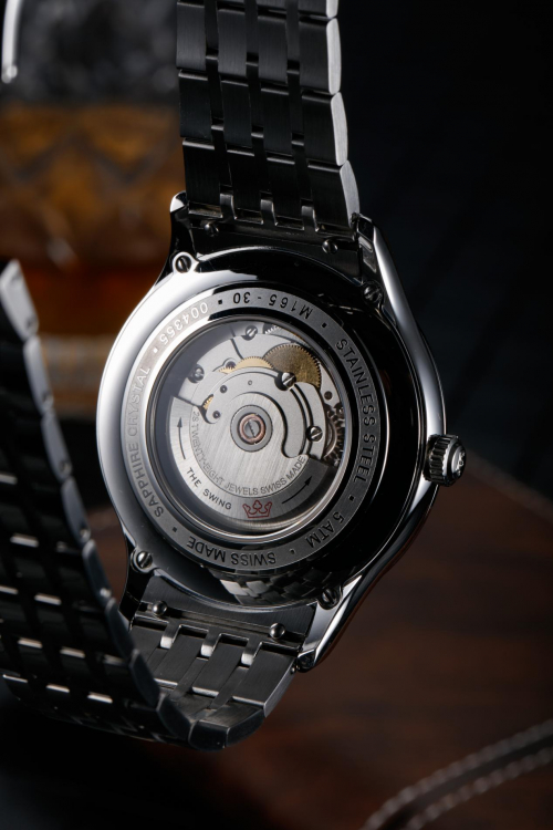 摩纹全新M165博物馆机械腕表搭载自主研发的摩纹620A.H机芯,具备42小时动力储存和双向自动上链系统,震频28,800次/小时(4Hz)。机芯经过精细打磨,展现了摩纹对细节的极致追求,无论是功能性还是美观性,都达到了瑞士高级制表的标准。